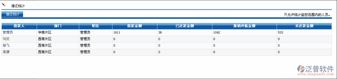 (3)可對員工的借還款差值進(jìn)行統(tǒng)計。