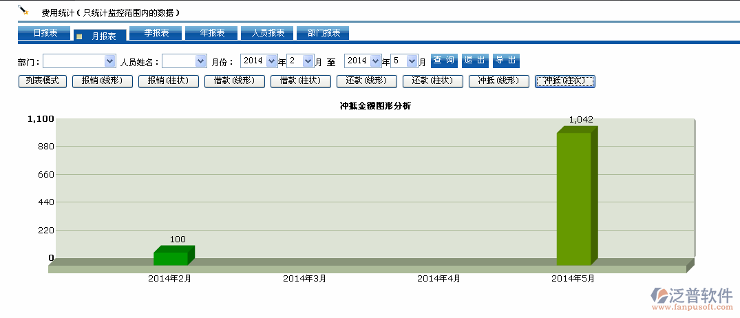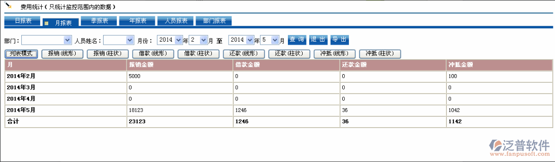 (4)可進(jìn)行報銷抵扣,借款,還款進(jìn)行綜合同比統(tǒng)計。