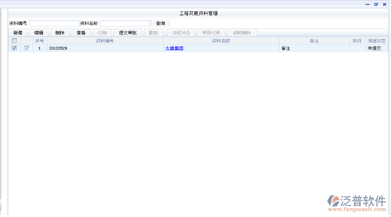設(shè)計變更資料管理的新增、編輯、刪除、查看等具體操作參考業(yè)務(wù)窗體操作方法;