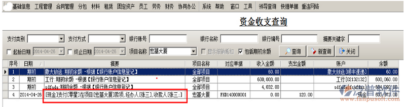 下面是最終的資金流水,看摘要我們可以得知:向[零星]單位付款,收款人是張三,如下圖: