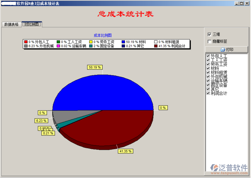 “工程成本、利潤對比”可實現(xiàn)某項目的成本查詢、成本分析圖、某項目不同部位的對比、 多個項目的成本對比。如下圖: