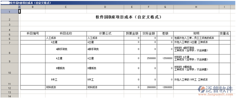 -“當前選中項目”,可按照自定義成本科目顯示成本,如圖: