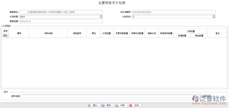 2. 月計(jì)劃編號(hào):自動(dòng)生成;