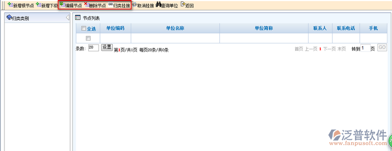 4、選中創(chuàng)建好的往來(lái)單位信息即可進(jìn)行【編輯】、【刪除】以及【歸類(lèi)掛靠】管理。如圖: