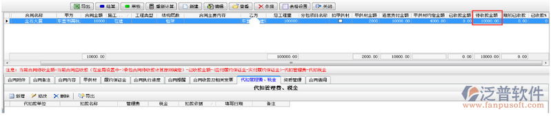 填寫完成【代扣管理費稅金】模塊時待收款金額