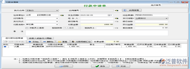 因為借用乙方B的資質或者乙方B代開發(fā)票需要向乙方B支付管理費和稅金。這時我們需要做其他費用單在做付款申請單或者付款單,具體操作如下: