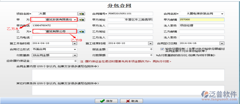 解決辦法:在招投標(biāo)以及在整個(gè)項(xiàng)目建設(shè)中會涉及到三方,分別為: 甲方(建設(shè)單位) ,乙方A(施工單位),乙方B(施工單位)其中乙方A為自己公司