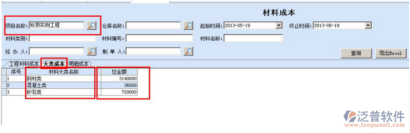 當(dāng)前位置:工程項(xiàng)目OA系統(tǒng) > 建筑施工OA系統(tǒng) > 功能介紹 > 成本管理 > 輔材報(bào)表分析
