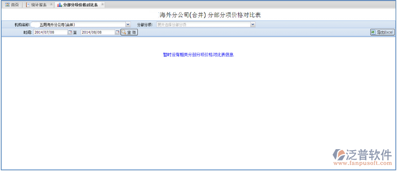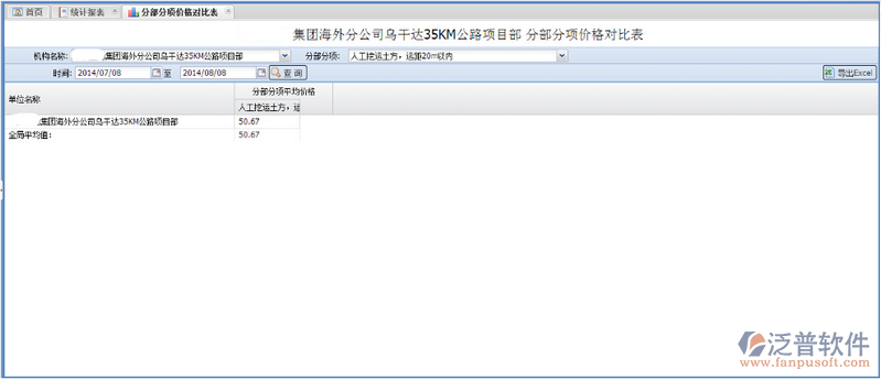 1、通過【功能菜單—統(tǒng)計報表—分部分項價格對比表】進(jìn)入“分部分項價格對比表”界面: