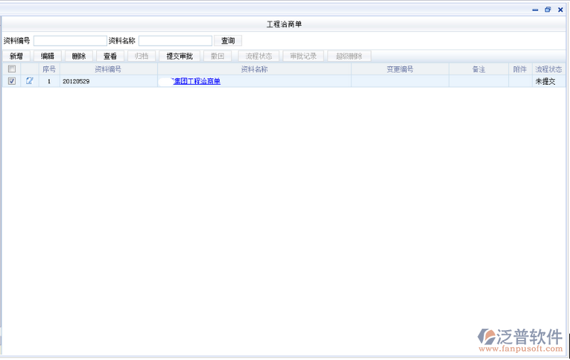工程洽商單具體的新增、編輯、刪除、查看等操作參考業(yè)務(wù)窗體操作方法;