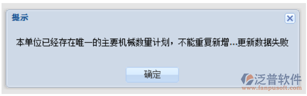 注意:每個項目只能有一個機械數(shù)量計劃初始,所以,如果項目部已經(jīng)有機械數(shù)量計劃初始了,再發(fā)起第二個機械數(shù)據(jù)計劃初始,就會在加載“機械數(shù)量計劃初始審批表”時,彈出以下的信息提示框: