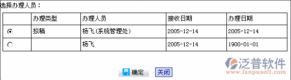 此窗口中,選中某一辦理環(huán)節(jié)前的復(fù)選框,點(diǎn)擊按鈕,則工作流被退回到該辦理環(huán)節(jié)的相關(guān)辦理人員重新辦理。