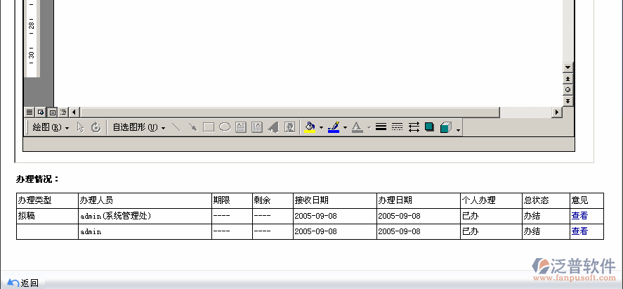 點(diǎn)擊列表中某一工作流申請(qǐng)后的查看鏈接,即可進(jìn)入“工作流查看”頁(yè)面: