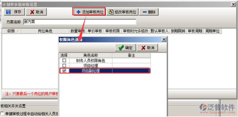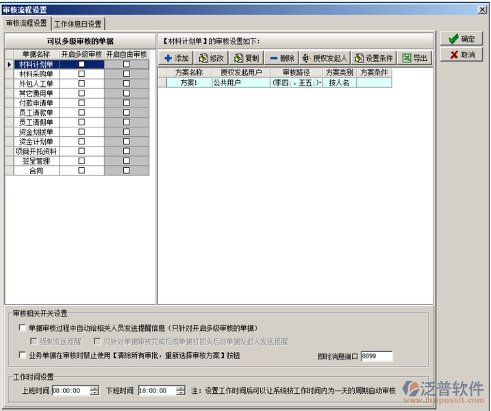 程設(shè)置”彈出“審核流程設(shè)置對話框”,如圖: