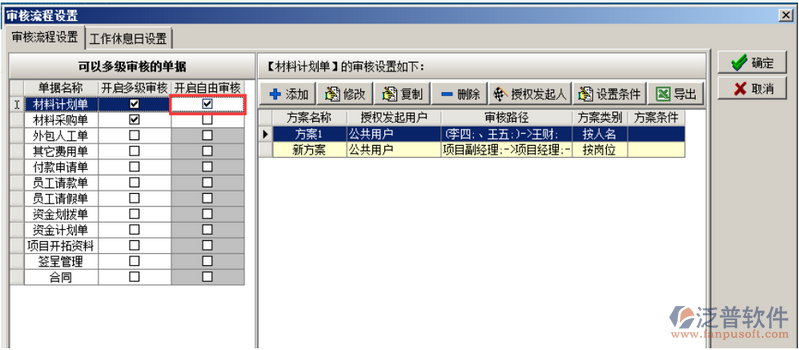 如果單據(jù)開啟自由審核則在單據(jù)對應(yīng)的“自由審核”的復(fù)選框內(nèi)打鉤,如圖: