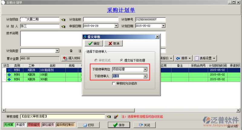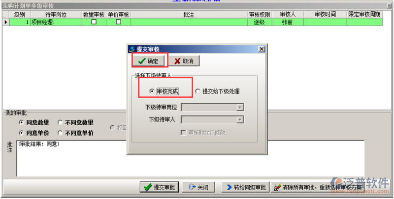 單據(jù)的創(chuàng)建人在發(fā)起審核的時(shí)候選擇“自定義審核”,確定之后選擇下一級(jí)審核人,如圖;