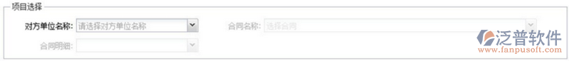 2. 合同名稱:下拉框選擇,取對方單位該在項(xiàng)目部下簽過的所有合同(注意:沒有選擇對方單位名稱前,該項(xiàng)不可填寫);