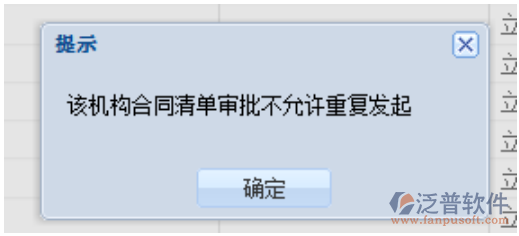 注意:合同清單審批只允許發(fā)起一次,如果重復(fù)發(fā)布,會(huì)出現(xiàn)一些提示信息: