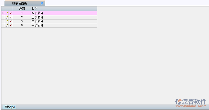 1、登錄項(xiàng)目管理系統(tǒng),點(diǎn)擊功能菜單樹,項(xiàng)目前期->基本設(shè)置->跟單價(jià)值設(shè)置,系統(tǒng)瀏覽窗口如下: