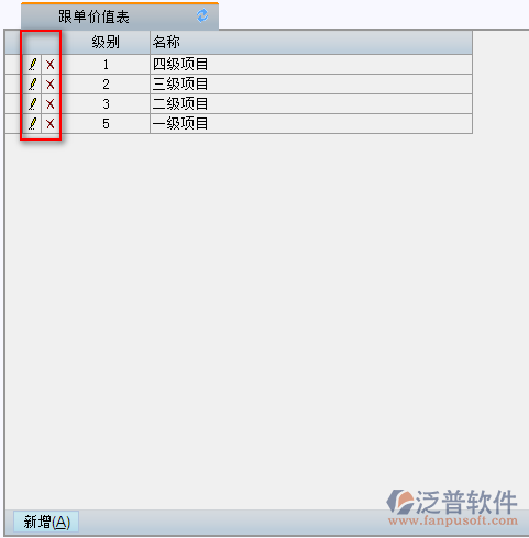 3、創(chuàng)建好的跟單價(jià)值可點(diǎn)擊編號前的相關(guān)圖片進(jìn)行【刪除】、【修改】操作。如圖: