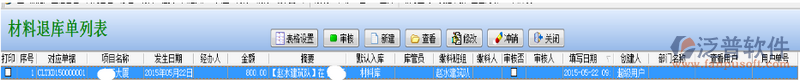 當(dāng)前位置:工程項(xiàng)目OA系統(tǒng) > 建筑施工OA系統(tǒng) > 功能介紹 > 材料管理 > 退庫(kù)管理