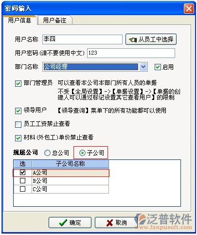 如上圖:李四規(guī)屬于A公司,是【公司經(jīng)理】可以看到A公司的所有部門、所有授權(quán)項(xiàng)目有關(guān)的單據(jù)。