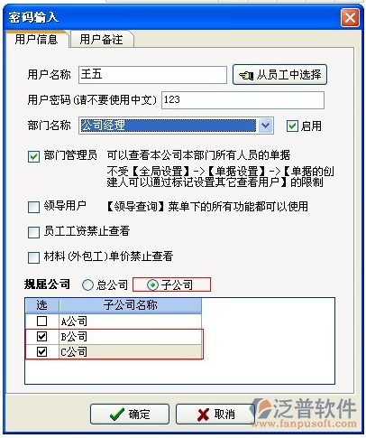 如上圖:王五規(guī)屬于B、C公司,是【公司經(jīng)理】可以看到B、C兩個(gè)公司的所有部門、所有授權(quán)項(xiàng)目有關(guān)的業(yè)務(wù)單據(jù)。