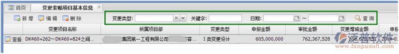 8. 在臺(tái)賬界面,可以對(duì)變更索賠項(xiàng)目基本信息進(jìn)行新增、編輯、刪除等操作。