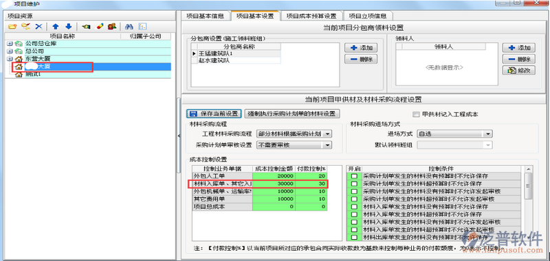 在新建項目時設置成本控制金額和付款控制比例。具體設置方法【工程管理】模塊?【項目維護】項目基本設置