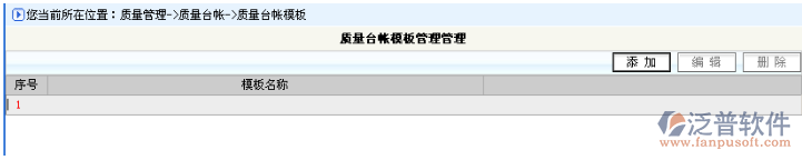 登錄項(xiàng)目管理系統(tǒng),點(diǎn)擊功能菜單,質(zhì)量管理->質(zhì)量臺(tái)帳->質(zhì)量臺(tái)帳模板,系統(tǒng)轉(zhuǎn)入質(zhì)量臺(tái)帳模板信息列表,系統(tǒng)瀏覽窗口如下: