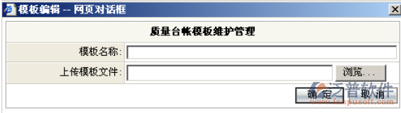 如圖-<質(zhì)量臺(tái)帳模板.新增>,輸入模板名稱信息,選擇模板文件,點(diǎn)擊“確定”功能按,臺(tái)帳添加成功,具體操作參考常用工具的操作方法;
