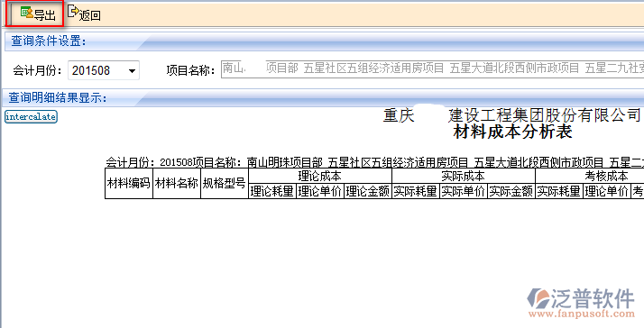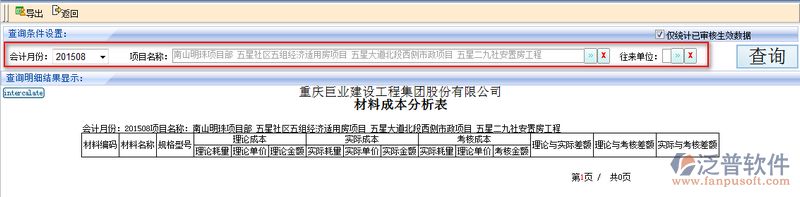 2、材料成本分析可通過系統(tǒng)系統(tǒng)的檢索條件進行模糊查詢。系統(tǒng)支持多條件或單個條件進行查詢。其中項目可以多個項目同時查詢。如圖: