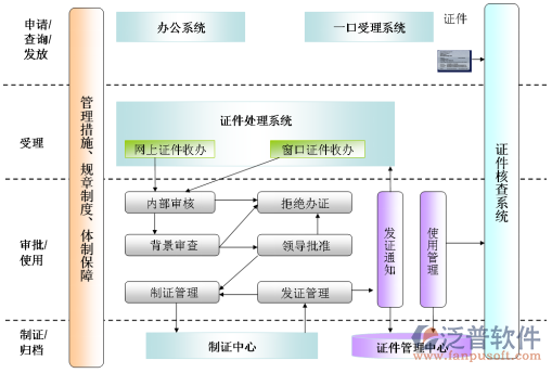 證件管理系統(tǒng)是用戶建設(shè)和運(yùn)營期間,證件管理工作的業(yè)務(wù)管理支撐系統(tǒng)。證件管理系統(tǒng)和與之協(xié)同工作的證件查驗(yàn)終端系統(tǒng)、證件制作系統(tǒng)組成了用戶證件管理的工作平臺。管理系統(tǒng)平臺整體框架結(jié)構(gòu)可參考下圖: