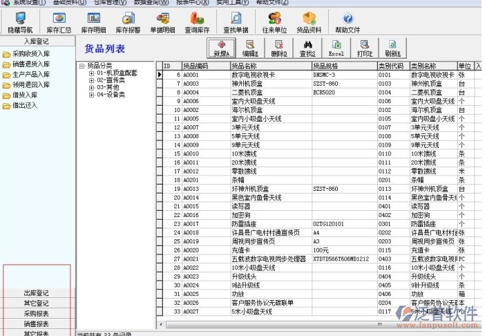 7、貨品和來(lái)往單位資料支持樹形分類管理;