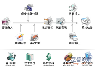 泛普軟件泛普OA系統(tǒng)支持憑證插入功能和進(jìn)銷存處理,自動計(jì)折舊,自動結(jié)轉(zhuǎn)銷售成本,只需錄入憑證,常用總賬、明細(xì)賬、數(shù)量金額明細(xì)賬、固定資產(chǎn)明細(xì)賬,銷售利潤表,科目余額表、資產(chǎn)負(fù)債表、利潤表、現(xiàn)金流量表、應(yīng)交增值稅明細(xì)表、及各種費(fèi)用報(bào)表會自動生成。支持反記賬和反結(jié)賬以修改前面有錯(cuò)的憑證,當(dāng)修改、添加、刪除會計(jì)科目后報(bào)表會自動修復(fù)更證。
