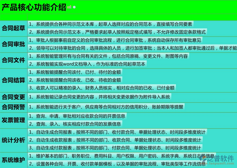 二、泛普軟件合同管理軟件免費版功能概述