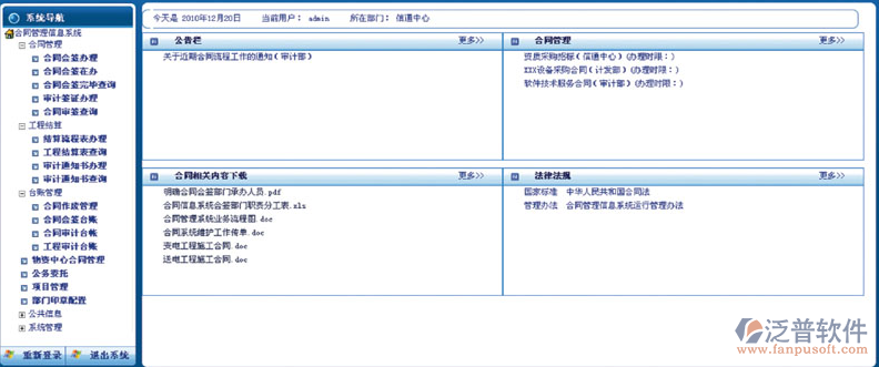 泛普軟件合同管理軟件免費(fèi)版通過對企業(yè)合同全面的信息化、網(wǎng)絡(luò)化管理,達(dá)到加強(qiáng)企業(yè)合同的規(guī)范化管理、提高企業(yè)在合同管理流程環(huán)節(jié)的工作效率之目標(biāo)。
