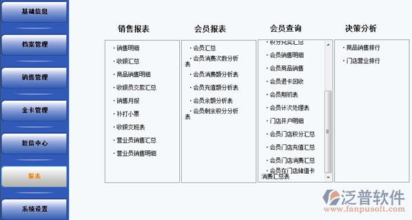 泛普軟件的會員軟件分為管理端和操作端兩部分。管理端設(shè)定權(quán)限、匯總并查看數(shù)據(jù);操作端數(shù)據(jù)錄入、積分兌換。軟件支持多分店聯(lián)網(wǎng)使用。操作端既可在電腦上使用,也可在手持終端甚至是普通手機上使用,幫您節(jié)約大量成本。