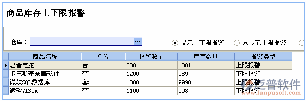 庫存管理軟件免費版上下限報警界面