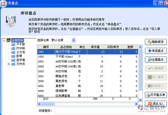 泛普軟件庫存管理軟件是一款通用性很強的倉庫管理軟件,適用于百貨、食品、服裝、化妝品、貿(mào)易、物資、電子、電器等廣泛領(lǐng)域,軟件具有出入庫、調(diào)撥、借還、盤點、多倉庫管理、成本計算、單據(jù)打印以及豐富的查詢統(tǒng)計功能,界面友好、性能穩(wěn)定、實用易用。