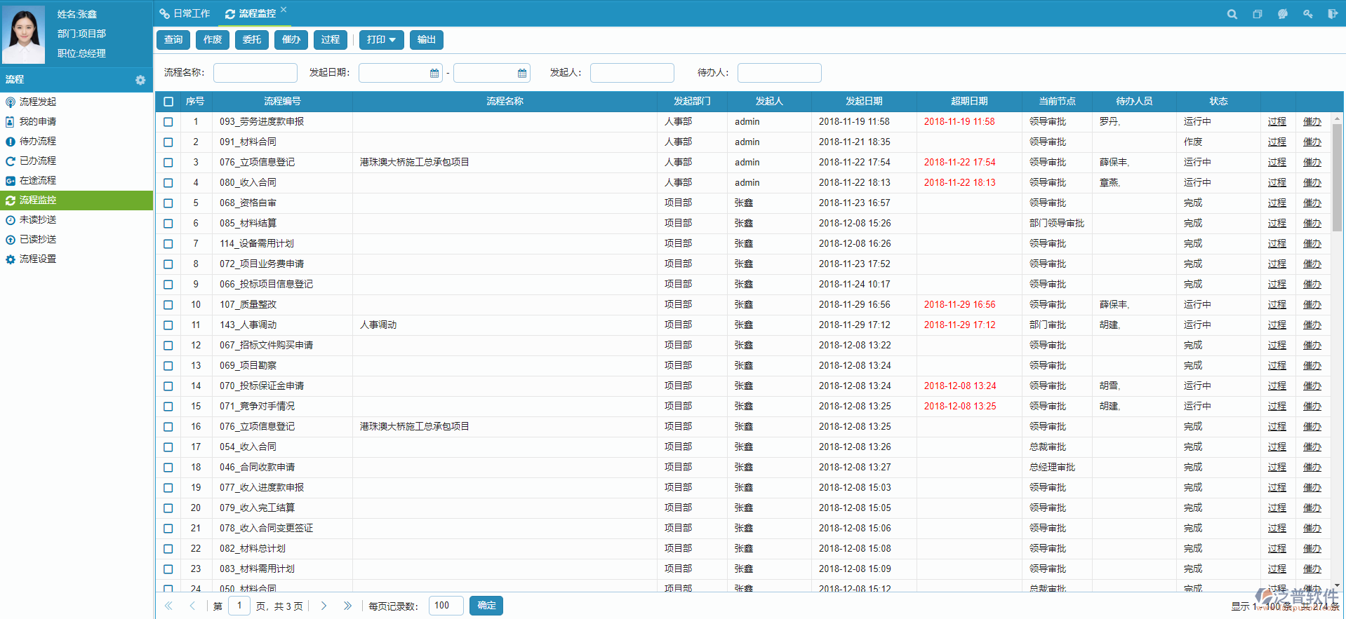(2)進(jìn)度執(zhí)行:以部門工作為主線,供部門負(fù)責(zé)人、普通員工使用。