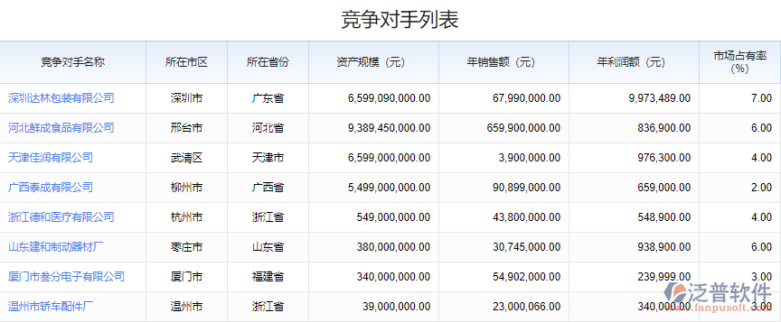 3、 通過(guò)系統(tǒng)的競(jìng)爭(zhēng)對(duì)手分析可以記錄競(jìng)爭(zhēng)對(duì)手的詳細(xì)信息,領(lǐng)導(dǎo)可以隨時(shí)查看,方便對(duì)決策進(jìn)行分析,提升企業(yè)的業(yè)務(wù)效率。