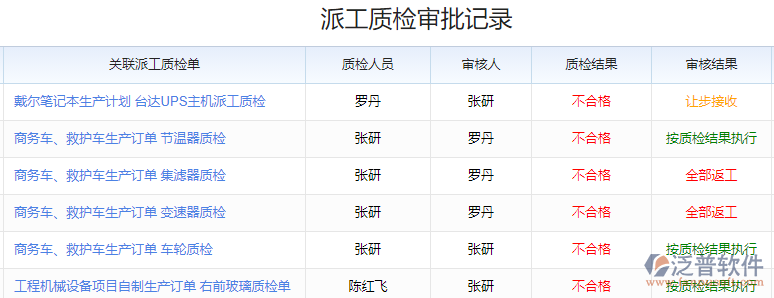 2、 通過系統(tǒng)的派工質(zhì)檢列表可以填寫具體的質(zhì)檢情況,包括派工人員、派工產(chǎn)品以及所需的物料明細,讓領(lǐng)導清楚的了解派工情況。