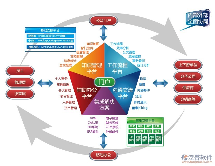 5、 協(xié)同OA建立全面風險管理信息系統(tǒng),使該體系做到人工化、職能化、自動化、智能化“四化”結合;