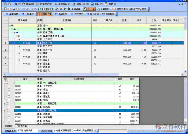 無論是工業(yè)或民用建筑的施工,都涉及土建和安裝,而土建施工又涉及到土方工程、地基和基礎(chǔ)工程、鋼筋混凝土工程、磚石工程、裝飾工程和鋼結(jié)構(gòu)工程等,安裝有設(shè)備安裝、管道安裝、儀表安裝、照明安裝等,而例如鋼筋混凝土工程中有測量放線、鋼筋、模板、混凝土澆筑、養(yǎng)護(hù)、拆模等工序,如此形成一個(gè)比較龐大繁雜的系統(tǒng)。為了更好地實(shí)施費(fèi)用和進(jìn)度綜合控制,就要從工序到項(xiàng)目進(jìn)行合理劃分,并進(jìn)行編碼,形成一個(gè)項(xiàng)目組織系統(tǒng)。泛普軟件以某4棟住宅小區(qū)為例劃分見附圖。