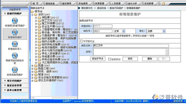 4。工程交付階段:施工工程項(xiàng)目部分或全部驗(yàn)收合格,這就要及時(shí)和業(yè)主單位辦理驗(yàn)收交付手續(xù),以便收回工程款,此時(shí)資金的形態(tài)也由成品資金轉(zhuǎn)化為貨幣資金。從整個(gè)項(xiàng)目來看,如果收入大于耗費(fèi)量則項(xiàng)目實(shí)現(xiàn)盈利,反之則虧損,泛普軟件-公路工程管理系統(tǒng)隨即在從甲方取得結(jié)算資金后應(yīng)要做好資金的分配工作,如兌現(xiàn)職工的獎(jiǎng)勵(lì)款、繳納稅金、向公司上繳資金款等。