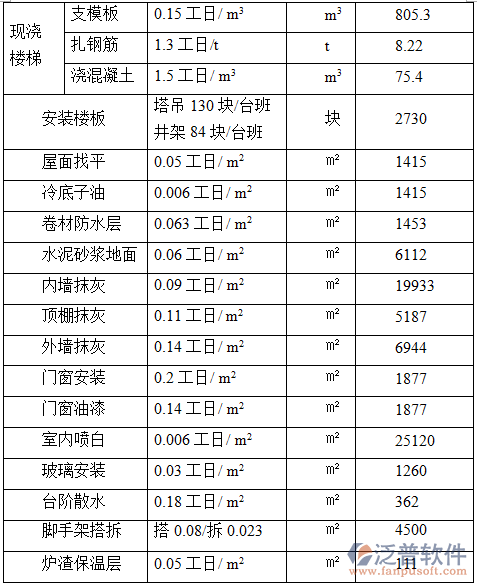 建筑施工管理軟件施工工程量匯總表