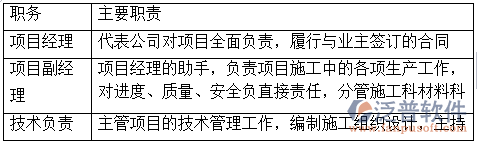 作為項(xiàng)目的承建方,是承擔(dān)項(xiàng)目的實(shí)施并為業(yè)主提供服務(wù)的經(jīng)濟(jì)實(shí)體,其組織機(jī)構(gòu)設(shè)置是以確保本企業(yè)經(jīng)營(yíng)目標(biāo)的實(shí)現(xiàn),建筑施工管理軟件履行自身的經(jīng)營(yíng)管理、指揮決策職能為目的。本次承攬工程規(guī)模不大,因此選擇職能式的組織機(jī)構(gòu)形式。項(xiàng)目經(jīng)理一方面通過職能部門對(duì)工程項(xiàng)目實(shí)行橫向領(lǐng)導(dǎo),另一方面又實(shí)施縱向領(lǐng)導(dǎo)。