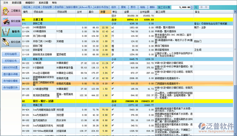 泛普軟件泛普OA系統(tǒng)ERP裝飾管理系統(tǒng)軟件與精打細算家裝預算(成本控制)軟件的區(qū)別在于:精打細算家裝預算軟件主要針對家裝企業(yè)的,其功能強大,做完預算程序就將該預算的用材、人工、機械等成本和預算的利潤等生成表格,使得裝飾公司可以按照精打細算家裝預算軟件生成的一系列表格對裝飾工程進行周密的管理。 但是其缺點是相對專業(yè)一些,對于公司沒有接觸過定額報價的員工來說上手會遲緩一些。