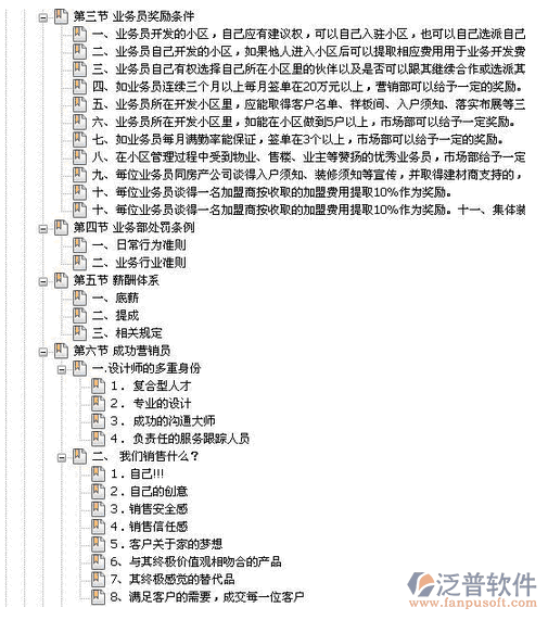 裝飾企業(yè)全程營(yíng)銷(xiāo)管理解決系統(tǒng)把健全管理制度、理順管理關(guān)系,作為規(guī)范項(xiàng)目管理行為的“內(nèi)部法典”。項(xiàng)目管理是通過(guò)管人來(lái)管事的,既是人治又是法制,但人治是建立在法制的基礎(chǔ)上的,是通過(guò)管理制度來(lái)管人的。管理制度的起草建立必須體現(xiàn)出預(yù)見(jiàn)性、連續(xù)性、科學(xué)合理性和可操作性。因此,泛普軟件-裝飾企業(yè)全程營(yíng)銷(xiāo)管理解決系統(tǒng)建立管理制度體系,必須參照國(guó)內(nèi)同行業(yè)先進(jìn)企業(yè)、同行業(yè)兄弟單位先進(jìn)的先進(jìn)管理經(jīng)驗(yàn)來(lái)進(jìn)行。并結(jié)合公司管理要求和結(jié)合項(xiàng)目工程特點(diǎn)、項(xiàng)目所處地域特點(diǎn)、業(yè)主監(jiān)理管理特點(diǎn)和項(xiàng)目人員構(gòu)成特點(diǎn),進(jìn)行綜合分析,花大力氣抓好企業(yè)內(nèi)部規(guī)章制度的建設(shè)。要反復(fù)論證各項(xiàng)管理制度之間連貫性,避免執(zhí)行起來(lái)相互矛盾,既要理順內(nèi)部管理制度的關(guān)系,又要通過(guò)制度理順整個(gè)項(xiàng)目的管理關(guān)系。各項(xiàng)制度在執(zhí)行的過(guò)程中,隨著項(xiàng)目?jī)?nèi)外情況的變化,不可避免會(huì)出現(xiàn)制度缺陷,項(xiàng)目第一管理者要及時(shí)根據(jù)變化了的情況及時(shí)修訂完善,使之不斷適應(yīng)管理的需要。項(xiàng)目管理千頭萬(wàn)緒,哪一個(gè)環(huán)節(jié)處理不好就可能影響到整個(gè)管理鏈條的中斷,所以,從項(xiàng)目組建之日起,就要通過(guò)制度千方百計(jì)理順內(nèi)外關(guān)系。